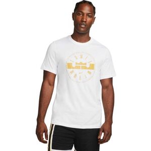 The NIKE LeBron Dri-Fit short sleeve T-shirt in White is a stylish and functional addition to any man's wardrobe. Made from Nike's signature Dri-Fit fabric, this t-shirt is designed to wick away sweat and keep you cool and comfortable during workouts or everyday activities. The clean white color is versatile and easy to pair with any bottoms, while the LeBron logo adds a touch of athletic style. Whether you're hitting the gym or just running errands, this t-shirt is sure to keep you looking and feeling your best.