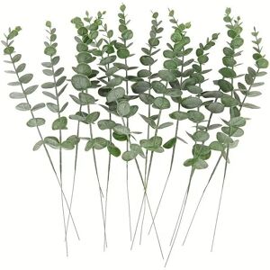 Artificial Eucalyptus: The package contains 20 artificial eucalyptus stems. Each eucalyptus stem is about 38 cm long. Durable Material: The artificial eucalyptus stems and leaves are made of high-quality plastic, and the artificial eucalyptus stems come with a flexible wire that can be easily matched with other bouquets. Realistic Features: The artificial eucalyptus stems are made of high-quality materials, durable and practical, allowing them to maintain the most original natural appearance for a long time. MULTIPLE USES: You are free to choose bulk eucalyptus branches to mix with other bouquets. They are perfect decoration for weddings, parties, homes, offices, dining tables and more. Warm Tips: These artificial eucalyptus leaves surface are treated with special white powder to simulate real plants. If there is some white powder coming out of the package when it arrives, it is normal.