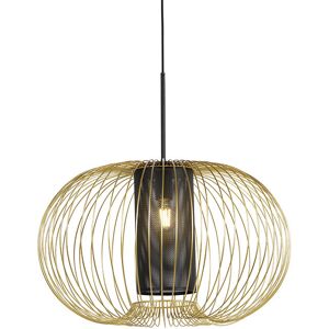 QAZQA Design Pendant Light Gold with Black 40 cm - Tess Tess steals the show in any room. What a beautiful pendant light! The black frame wrapped by a golden cylinder is what makes this lamp so unique. The lamp is made of metal and is black with gold. It has a diameter of 40 cm and a height of 171 cm. The mounting plate has a diameter of 13 cm. The shade has a diameter and height of 40 cm. You can complete Tess with an E27 light source (max. 60W), which you need to order separately. Do you want extra cosiness? Then you can dim Tess with an external dimmer. This lamp is a beautiful first impression in the hallway, but also looks beautiful above the dining table. We are completely in love with Tess! Bulb holder: E27 . Max 1 x 60 W, 230 V Suitable for: Halogen, Led Connecting voltage: 220V/230V Protection class: IP20 Dimmable, dimmer not included,No, without cord and plug Lightsource: Exclusive The QAZQA Design Pendant Light Gold with Black 40 cm - Tess is Gold . Suitable living spaces