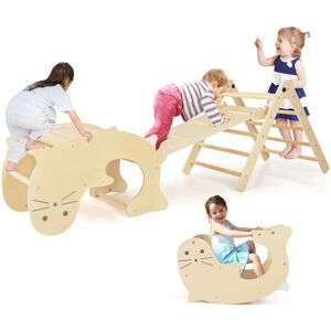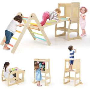This indoor climbing toy set is an ideal choice to help your kids burn their energy and exercise their muscles. It has a sliding ramp, climbing ramp, climbing ladder, crawling tunnel, step stool, and kids table and chair set. Your little one can fully enjoy the fun of sliding, climbing, or crawling. The triangle climbing ladder is angle-resistant for different climbing uses. Plus, you can also adjust the height of the 2-in-1 ramp to meet the growing stages of your child. Different from other climber sets, our 7-in-1 climbing gym comes with a toddler step stool to allow kids to help parents with cooking or doing small activities up higher. The step stool is also equipped with a drawing chalkboard. It can also be converted into a kids table and chair set. More importantly, the whole play set has passed EN71 certifications to ensure overall security. The triangular structure and balance support feet keep it stable and steady. After use, you can fold the triangle climbing ladder into a