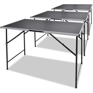 This pasting table set comes complete with 3 foldable tables. It is ideal for a wide range of uses, such as wallpaper pasting, home decorating, craft projects, material measuring, and more! Each of the 3 pasting tables has a frame made of strong and lightweight aluminium and an easy-to-clean black MDF tabletop. Supported by strong iron legs, the table set is very strong and stable. These 3 tables could be fixed together through the attached hooks. All the 3 tables are foldable for portability, and could be easily stored away when not in use. 3 foldable tables included MDF tabletop + iron legs Folded size: 100 x 60 x 3 cm Unfolded size: 100 x 60 x 82 cm Colour: Black Connected by hooks