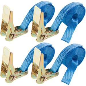 [SOLID WORKMANSHIP] 100% polyester reinforced stitches high tensile strength extremely high load capacity maximum lashing force weather-resistant [SAFE] Our straps are safe and officially approved for load securing comply with DIN EN 12195-2 [EASY TO USE] Easy tensioning with ratchet handle function securely fix the most difficult items never lose a load again low risk of injury & accidental opening [FOR EVERY PURPOSE] Strap width is 50 mm and is ideal for motorbike transport, luggage lashing, load securing and more. [SCOPE OF DELIVERY] 4x tensioning strap length 6 m width 50 mm lashing force straight: 2500 daN/kg lashing force strapping: 5000 daN/kg AREBOS tensioning strap 6m two-piece 4-pack Load securing is not only sensible, but also a regulation for many private and commercial transports. AREBOS therefore offers you a wide range of easy-to-use products for professional load securing. Even if your motorbike itself becomes luggage : With AREBOS tension