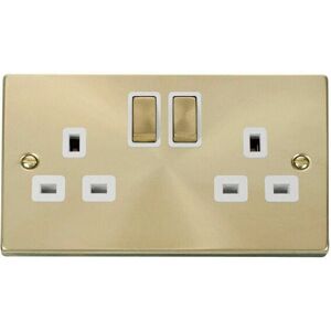 Satin / Brushed Brass 2 Gang 13A 2 usb Twin Double Switched Plug Socket - White Trim Se Home