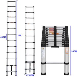 5M/16.4ft Aluminum Extension Folding Telescopic Loft Ladder Straight Attic Telescoping Ladders Capacity 150kg/330lb with Certificate EN131. About this item: 5M/16.4FT Ladder Multi Purpose --Fully Extended : 500cm* 48cm* 8.5cm - Folding: 98cm*48cm*8.5cm, Step spacing: 40cm. This telescopic ladder can use for Window Washing Cleaning Job Home Building Maintenance. Portable and Space Saving --This foldable ladder is 13.3kg/29.3lb lightweight, and can fold 98cm/3.2ft, which is easy to carry and storage. Our retractable ladder can be storage in garage, bed bottom, tailbox, a closet or similarly small storage space without taking too much space at all. Premium Aluminum Ladder --The telescopic extension ladder is made from high quality aluminum alloy, strong and sturdy, which can load 330 lbs capacity. Anodized aluminium finish, corrosion-resistant and anti-rust, extending the life of this telescopic ladder. EN 131 certificate! Telescoping Ladder Easy Operate --Extension and retraction, for