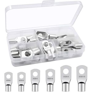 Set Content - The 30Pcs ring terminals are carefully packed and assorted in a plastic box, 6 sizes, This versatile variety of wire terminals will work with 16, 25, 35mm² gauge wire. We have included M8 and M10 rings for each wire size. High Quality - The ring terminals are made of thicker tinned copper, with excellent electrical conductivity, corrosion resistance, oxidation resistance and high temperature resistance, ensure tight crimping. Special Design - The terminals with sturdy construction improve durability at high temperatures and the closed design blocks moisture, ensure the reliability of the connection. High-level flared opening for easy wire insertion. Easy to Use - These battery wire terminals are easy to crimp, just use pliers to press the wires and terminals together, put the wires into the terminal end and clamp them tightly to ensure the connection with the terminal, then press the crimping tool. Wide Application - The cable terminal set is sturdy and safe, widely used