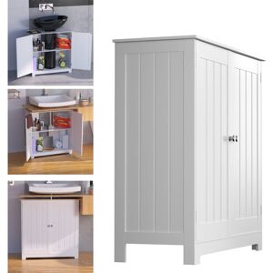 This stylish and sturdy under sink bathroom cabinet unit is the ideal space saving solution for your bathroom. This cabinet features two modern slatted doors with internal shelves, large storage space which can store all kinds of bathroom supplies, keep you bathroom tidy and free of clutter. The bathroom cabinet has a smooth painted finish, as simple and fashionable style furniture, decor your home Specification: Product Type: bathroom under sink storage floor cabinet with 2 doors Product Size: 22.8"(L) x 11.8"(W)x 23.6"(H) Sink Cut Out: 6.3”(W) x 3"(D) Product Weight: 8.76kg/19.3lbs Weight Limit: Top Board 10kg / 5kg Per Shelf Color: White Material: MDF Finish: Powder Coated Paint Installation type: Floor-standing Feature: Waterproof White cabinet,no worry about cleaning problems, the rack shelf can be washed directly in water. The bathroom cabinet requiring simple assembly and a screwdriver, easily assembly in 5-10 minutes, 6.3”(W) x 3"(D) 'U'shaped cut-out for the pipe. Please