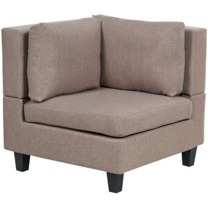 Corner Seat for Modular Sofa. This corner module is going to be a great, multifunctional addition to your living space. You can either use it together with other elements to create a sofa straight out of your dreams, or use it as a standalone, extra seating space. Crafted out of pleasant to touch polyester fabric, the piece is quite durable. The thickly padded seat offers great comfort when sitting, which is additionally elevated by a cushioned backrest. The whole construction is also stable due to wide legs in black colour. Details: Product Type: Module Element Style: Modern General Color: Brown, Black Material Type: Fabric Main Material: Fabric Additional Material: Eucalyptus Wood Filling Material: Foam Material Composition: 100% Polyester Arm Style: Track Fabric Upholstered Back: Yes Leg Caps/ Pads: No Pattern: Solid Seat Construction: Sinuous Springs Seat Foam Density: 30 kg/m3 Seats Up To: 1 Person Dimensions: Armrests Height: 72 cm Depth: 76 cm Seat Thickness: 10 cm Seat Height: