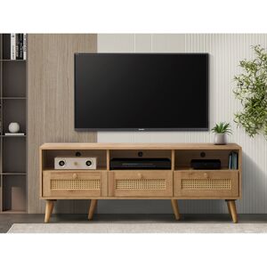 The Anagh Rattan 3 Drawer TV Unit offers a perfect blend of function and natural style, ideal for modern and rustic-inspired living spaces. With a warm oak-effect finish and three side-by-side drawers featuring detailed PVC Rattan fronts, this unit brings texture and character to your entertainment area. Above each drawer is an open shelf action, providing easy access to media players, consoles, or decorative items. Thoughtfully designed with built-in cable management holes in each compartment, it keeps wires organised and out of sight for a clean, clutter-free setup. 17 Stories