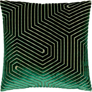 A luxuriously designed cushion featuring mesmerising, strong geometric cut velvet detailing, giving it plenty of stage presence. The Evoke cushion is complete with metallic threads running through the base fabric, in a bold golden weave, set on a jewel toned background which makes this piece stand out. Finished with a smart knife edged trim, hidden zip closure and a plain velvet reverse. Layer them tone on tone or in contrast jewel colours to suit your sophisticated sanctuary.