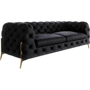 The Chesterfield sofa with golden metal leegs is an elegant addition to your living room. Crafted from high-quality velvet fabric, this sofa offers not only a touch of luxury but also high comfort. The seat cushions are filled with premium foam padding and springs, providing a plush and supportive sitting experience. The classic Chesterfield design with button detailing on the front and back gives this sofa a timeless elegance. The golden metal leegs in a shiny gold finish not only offer stability but also add a touch of glamour. These leegs elegantly elevate the sofa from the floor, giving it a floating appearance in the room. The high-quality velvet fabric is not only pleasant to touch but also durable and resistant to stains and damage. This sofa accommodates two people comfortably and is perfect for cozy evenings or conversations in smaller gatherings. A focal point in any living room. Etta Avenue Upholstery Colour: Black, Size: 73cm H x 185cm W x 100cm D, Seating Capacity: 2