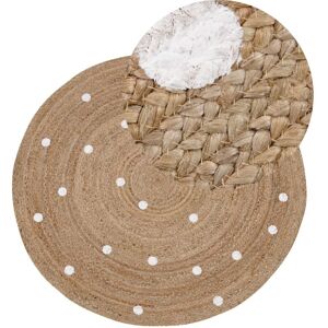 Area Rug in Geometric Pattern. A suitable choice for every modern home, this jute rug thanks to its neutral shade complements all colour schemes. Featuring a plain design highlighted just by white dots, it is easy to style within any interior. The rug is made from jute, bringing home a natural touch. Details: Product Type: Low Pile Style: Boho General Color: Beige, White Material Type: Fabric Main Material: Jute Material Composition: 100% Cotton Shape: Round Anti-Slip Bottom: No GSM: 1570 g/m2 Pattern: Geometric Pattern Suitable for Underfloor Heating: Yes Weaving: Handwoven Dimensions: Pile Height: 1 cm Width: 140 cm Length: 140 cm Weight: 3 kg Offer Includes: 1 x Rug Key Features: Warm, Elegant Colour, Minimalistic, Scandinavian Style, Blends Well with Any Decor, Perfect for Both a Bedroom and a Living Room, High-Quality Materials Assembly Information: Does Not Require Assembly Additional Information: Please note that due to the fact that the rug is handwoven, each piece may