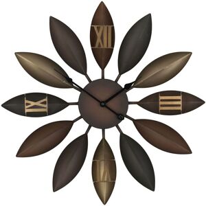 Vintage Wall Clock. Enrich your house with this beautifully worked flower-shaped wall clock. Made from iron and painted in brown, it has a distressed appearance. Perfect to place in a living room, guest room or bedroom, the clock creates a vintage touch makes any interior stylish. The construction is solid, and the long life of the clock is provided by the quartz battery. The clock is a great blend of functionality and decor. Details: Product Type: Wall Clock Style: Retro General Color: Brown, Gold Material Type: Metal Main Material: Iron Dimensions: Depth: 6 cm Width: 55 cm Height: 55 cm Weight: 1 kg Offer Includes: 1 x Clock, Not Included: Batteries Key Features: Timeless Design, Chic Look, Works Great with Many Interior Styles, Exceptionally Low-Maintenance, Powered by Single AA Battery Assembly Information: Does Not Require Assembly Maintenance tips: Iron: 1.Clean with a mild cleaner and soft cloth, wipe dry afterwards 2.To avoid scratches do not use abrasive cleaners 3.For copper