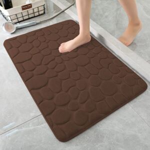 COMFORTABLE TO STEP ON : Our non-slip bath mat is filled with memory foam. When you step on it, the foam deforms and perfectly wraps the soles of your feet. The soft feeling is comparable to walking on clouds. The sponge slowly flattens and returns to its original shape. UNIQUE IMAGE : The bathroom mat has a unique pebble look that helps you relax and connect with nature. It is covered with soft coral velvet, skin-friendly and breathable, and helps you release the stress of the day SUPER ABSORBENT SHOWER PAD : The sponge has a honeycomb porous structure with high water absorption capacity. It can absorb water in seconds to keep your feet dry and clean. Water does not stay on the the surface of the bathroom mat. Safe and Non-Slip : The rubber base of the bath mats effectively prevents slipping, and thousands of PVC anti-slip dots provide you with double protection. Make sure the floor is dry and clean, otherwise the non-slip effect may be affected. Care Instructions : There may be some