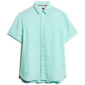 Superdry Vacation Linen Short Sleeve Shirt Sea Blue Chambray M Men