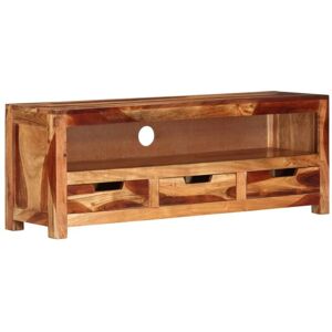 This elegant wooden TV cabinet will become the focal point of your living room or entertainment area. It can be used as a TV stand, monitor riser, Hi-Fi cabinet, sideboard, or lowboard. The TV cabinet with 2 doors and 2 open compartments provides ample space for keeping your DVD player, game console, streaming device, media carriers, etc. neatly organised. The cabinet is made of solid acacia wood with a honey touch finish and is highly sturdy and durable. Acacia wood is a tough hardwood with beautiful grains that will last for many years. Every step of the construction process is carried out with the greatest care, be it polishing, painting, or lacquering. Important note: The colours vary from piece to piece, making each of TV cabinets unique. The delivery is random, ensuring the exclusivity and individuality of your product. Material: Solid acacia wood a honey touch finish Dimensions: 140 x 30 x 40 cm (W x D x H) Finish: Polished, painted and lacquered 2 doors and 2 open compartments