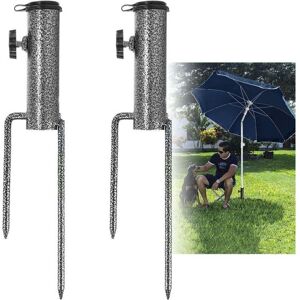 Sturdy iron parasol stand that can be fixed as a parasol, allowing you to enjoy the sea breeze on the beach for a day while being protected from ultraviolet rays. It is an indispensable helper for beach trips. Suitable for parasols outdoors, on the beach, in a garden courtyard, on a lawn, in a park, clothes rack in the garden, tennis net, signpost, canopies, etc. Can be inserted and easily removed thanks to its pointed dowel. Easy to screw into the ground without having to drill a hole first. Parasol base: Attaches to the parasol with a maximum pole diameter of 36mm. Features: Color: Black Silver. Material: Iron ;Size: Length: 32 cm / 12.60 inches Reach - Diameter: Max. 3.6 cm Package dimensions 40 x 40 x 13 cm Package contents: 2 pieces Parasol stand Warning: Not suitable for children under 3 years, should be used under adult supervision.