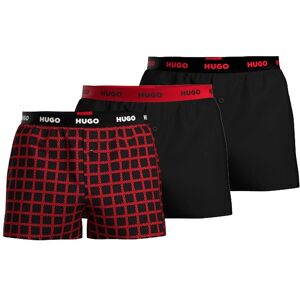 A trio of patterned and plain boxer shorts in cotton poplin by HUGO Menswear.Each pair has a regular-rise waistband with repeat logos.Features:- Regular rise.Specifications:- Composition:100% Cotton.- Waistband:55% Polyamide, 33% Polyester, 12% Elastane.Care:- 40°C coloured wash.- Do Not Bleach.- Do Not Tumble Dry.- Iron Medium Heat.- Do not chemical dry clean.