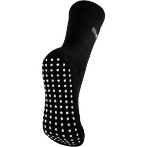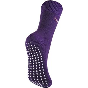THMO thermal slipper socks have been made with a heavy bulk acrylic yarn with extreme thermal qualities. They have been double brushed on the inside to maximise warmth by trapping warm air and keeping it close to your feet. This brushing also softens the inside of the sock making it a great choice for indoor relaxing as well as a sock for outdoor activities. These thermal socks also feel like they are seamless with a neat hand-linked toe. The ribbed welt at the top of the sock has been designed to rest to the natural contours of your legs. This wide soft top provides all day comfort and will reduce the chances of nasty constriction rings developing around your legs. The THMO badge is also heat transferred onto the side of the sock. This is the THMO ladies slipper version of the thermal socks. An anti slip grip has been designed onto the foot of the sock in order to prevent you from slipping on surfaces such as hard wooden floors or kitchen tiles. It is a simple but effective dotted design on the foot of the sock. This is very handy if you are using our thermal socks to lounge around the house instead of going outdoors and using them for walking and hiking. These ladies THMO thermal slipper socks are available in 3 colours including black, purple and deep fuchsia, the dotted grip is the same colour as the socks. They are a size 4-8 UK 37-42 Eur 5-8 US and they are made from 93% Acrylic, 6% Polyamide, 1% Elastane. They are also safely machine washable.