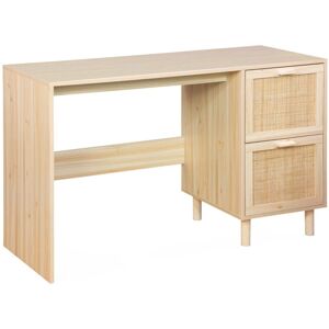 Our Camargue collection has everything you need. The pieces in this range have an elegantly understated, vintage look which combines wood decor with woven cane rattan. Soft, light furniture with an elegant feel. Whether you choose the bedside table, sideboard, bookcase or desk, the Camargue collection has been designed to offer you stylish storage pieces with a light and airy feel. You will love this unique desk, it is minimalist, retro and very practical, ideal for a nature-inspired home office decor. Its large surface allows you to work comfortably, while the two large drawers are perfect for discreet storage. The drawer fronts are covered with intricate cane rattan detailing and add a natural, bohemian style. The wood style surfaces have a very natural, authentic look. This desk will give you all the storage space you need while still being compact enough to fit in smaller spaces. Desk dimensions: L120 x W48 x H75cm Drawers dimensions: L28 x W45 x H37cm Number of drawers: 2