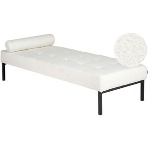 Stylish Chaise Lounge. This chaise longue is a perfect blend of comfort and style for your living room or bedroom. This elegant piece is upholstered in plush bouclé fabric, offering a soft, inviting texture. It comes with an additional pillow that features a removable cover for easy cleaning. It is supported by sturdy metal legs, providing both stability and a sleek, contemporary look. Details: Product Type: Chaise Lounge Style: Modern General Color: Beige, Black Material Type: Fabric Main Material: Boucle Additional Material: Poplar Wood Filling Material: Foam Material Composition: 100% Polyester Arm Style: Armless Orientation: Symmetrical Pattern: Solid Reclining: No Seat Construction: Elastic Belt Seat Foam Density: 30 kg/m3 Dimensions: Depth: 73 cm Seat Thickness: 16 cm Seat Height: 41 cm Width: 178 cm Height: 41 cm Seating Surface: 178x73 cm Weight: 16 kg Weight Capacity: 300 kg Weight Capacity per Person: 100 kg Offer Includes: 1 x Chaise Lounge, 1 x Scatter Cushion Key