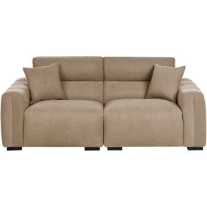 Upholstered Couch with Backrest Cushions. Introduce a touch of elegance to your home with this stylish upholstered sofa in a timeless brown hue. Crafted for both durability and comfort, it features a sturdy frame paired with plush cushions, ensuring long-lasting support and relaxation. The sleek, contemporary design is perfect for modern interiors, while the vibrant colour adds a refreshing pop of personality to your living space. This versatile sofa is an ideal choice for those seeking a blend of sophistication and comfort. Details: Product Type: 3 Seater Sofa Style: Minimalist General Color: Brown Shade: Light Brown Material Type: Fabric Main Material: Fabric Additional Material: Plywood Filling Material: Foam Material Composition: 100% Polyester Arm Style: Track Pattern: Solid Seat Construction: Sinuous Springs Seat Foam Density: 25 kg/m3 Seats Up To: 3 People Dimensions: Armrests Height: 72 cm Depth: 93 cm Seat Thickness: 28 cm Seat Height: 48 cm Width: 214 cm Height: 72 cm