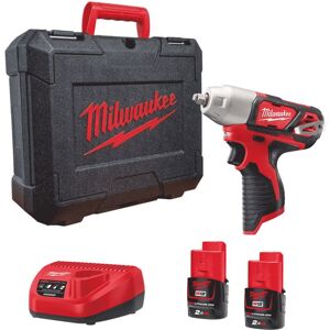 MILWAUKEE M12™ SUB COMPACT ⅜″ IMPACT WRENCH - KIT M12BIW38-0 Features: High performance sub compact impact wrench measures 165 mm in length making it ideal for working within confined spaces REDLINK™ overload protection electronics in tool and battery pack deliver best in class system durability Heavy duty full metal gearbox and gears for superior durability and maximum torque ⅜″ square drive with friction ring for use with universal sockets Optimised handle for better control and improved grip Individual battery cell monitoring optimises tool run time and ensures long term pack durability On board fuel gauge and LED light – added user convenience and illumination in low lit working conditions REDLITHIUM™ battery pack provides superior pack construction, electronics and fade-free performance to deliver more run time and more work over pack life Flexible battery system: works with all MILWAUKEE® M12™ batteries M12B2 Features: Sophisticated electronics: REDLINK™ intellige Overload