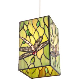 Beautifully hand-crafted dragonfly themed tiffany glass rectangular pendant lighting shade with open top and bottom. Features opal stained glass panels with intricate dragonfly design on each side including bright red and blue glass oval and circular beads. The glass looks stunning when light shines through. The product measurements are as follows - Height: 20cm, Depth: 13cm, Width: 13cm. Please note that ceiling rose and cable is not included - pendant shade only being sold. Complete with shade reducer ring allowing for all lamp bases - B22/BC, E14/SES and E27/ES. Maximum wattage allowed: 1 x 40watt (bulb not included). For indoor use only. On first use please wipe the shade with a dry cloth to clear any excess oil residue. Astoria Grand Colour: White