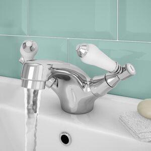 This beautifully crafted and inspired traditional bath filler tap is the perfect upgrade for the traditional bathroom. Its elegant crosshead handles and classic white indices add to the timeless look, while the ceramic disc technology ensures long life and smooth operation. Made from high-grade brass with a durable chrome finish. Nes Home Traditional Dual Cross Head Sink Basin Mono Mixer Tap Chrome in Silver