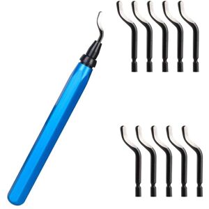Deburring Tool Set - With precision aluminum handle and 15 deburring blades. This deburring tool set offers comfortable and secure grip. Heavy Duty Deburring Blades - These deburring blades are made of high quality high speed steel. This makes them powerful and wear-resistant. High Quality Handle - Aluminum alloy tool handle with pin/hexagon shape. It is comfortable to hold and makes it easier for you to concentrate on your work in front of the workbench. Easy to Install - By squeezing the mounting head, the blade can be easily installed. The blade can be flexibly rotated 360 degrees and can be easily removed for deburring. Wide Applications - Perfectly performs coarse to extra fine deburring work. Works on metal, plastic, PVC and many other surfaces