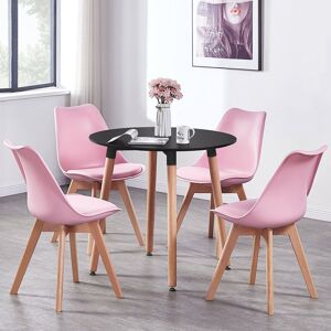 The table provides a sleek and practical surface for dining, drinks, or snacks, offering a perfect size that makes it easy to place anywhere in your home without creating clutter. Its unique design ensures it blends effortlessly with any environment, whether in the kitchen, dining room, living room, or bedroom. This table adds a touch of modern elegance to any space, providing both functionality and style in one perfect package. Pair this elegant table with our Scandinavian-inspired dining chairs, designed to offer both style and comfort. The chairs feature a durable polypropylene shell that provides optimal ergonomic support, complemented by a smooth waterfall edge and a plush padded seat cushion for maximum comfort. The solid beech wood legs add a touch of natural sophistication, while the foot pads protect your floors from scratches. This dining chair combines classic design with contemporary flair, making it a seamless addition to any interior. With a focus on premium materials and thoughtful craftsmanship, these chairs offer the perfect balance of style, comfort, and functionality, elevating your dining experience. All the essential hardware and tools needed for easy installation & an illustrated installation guide is included, providing step-by-step instructions and ensuring a smooth setup process. Norden Home Colour (Table Top): Black, Colour (Chair): Brown