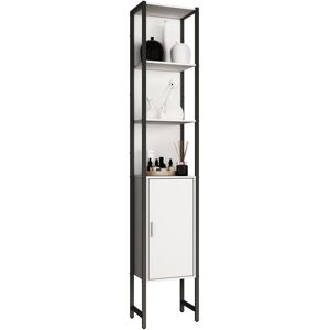 Bathroom cabinet dimensions: Approx. 185cm H x 33cm W x 30cm D. Bathroom furniture made of metal and wood with a revolving door Open compartments for quick access An eye -catching bathroom shelf with an industrial style design Borough Wharf Finish: White / Black
