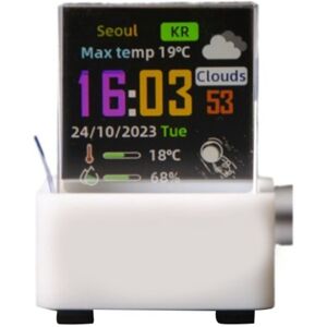 Innovative Design: The trendy and transparent design makes it not only a practical weather clock, but also a desktop decoration to show personality and taste. WiFi connection: This product can connect to WiFi, update time and weather information in real time, and provide extremely practical functions without affecting the beauty. Ease of use: clear digital display allows us to easily read time and weather information, which can be clearly seen even in dark environments. Accuracy: it can provide accurate time and real-time weather forecast, which can both office workers and students, or those who need to do things and pay attention to weather changes. gift: its design and practical function an ideal gift choice, which is very suitable for friends, family members and colleagues. Hign-concerned Chemical:None Is Smart Device:YES Style:Brief Display Type:DIGITAL Type:Desk Clocks Colour:As Shown Material:plastic Due to different product batches, the appearance , which does not affect the