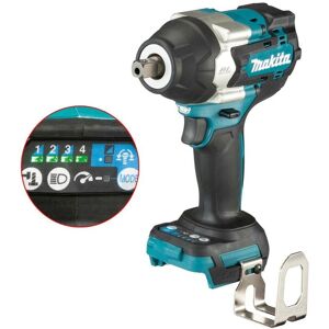 With a compact but powerful design, this DTW701Z 18v LXT Brushless 1/2"" Detent Pin Impact Wrench is a must-have piece of kit to help you speed up the tightening and loosening of nuts and bolts as you work. This lightweight Makita tool boasts a super high nut busting torque of 1,000Nm and a max fastening torque of 700Nm. Only 170mm in length, this impact wrench gives you comfortable handling without losing any impact. It has 4 stages of power selection for optimum RPM and fastening torque - Soft (150Nm), Medium (200Nm), Hard (320Nm) and Max (700Nm). This provides great versatility for all kinds of jobs, and the variable speed mode can be changed to full speed mode simply by pushing a button - when in full speed mode, the trigger travel is shorter, so the full speed is reached faster. This Impact Wrench has a brushless motor, as well as an auto-stop system available in both forward/reverse rotation modes that is optimised for fastening applications. There's also a unique rubber joint