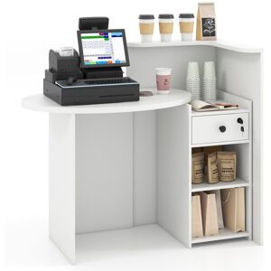 It comes with L-shaped top shelf, wide desktop and 2-tier open shelf to make it possible to classify different kinds of items. 3-position adjustable shelf also gives you customized storage space. Other than that, the front counter desk features lockable drawer and high side panels for property security and privacy. Furthermore, the home office desk can satisfy your desire in different occasions, such as company, lobby, store and reception room, etc. Bring the corner retail counter desk to maximize your workspace perfectly. Note: To make sure higher stability, this reception desk should be used in combination. Please dont divide into a piece for using alone. Costway Reception Desk with Lockable Drawer & Adjustable Shelf for Office in Black
