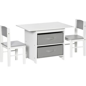 With this HOMCOM kids desk and chair set, children have their own space to read, study, eat and play they'll use the included whiteboard to draw and get creative. It comes with multiple storage spots, so they can organise their things, keeping their space tidy and free of clutter. Made from durable MDF and pinewood, the round edges stop kids from hurting themselves, creating a safe . Its matching design provides a stylish look, making a great addition to any room. HOMCOM 2 PCs Kids Table & Chair Set w/ Whiteboard, Storage Spaces in Grey