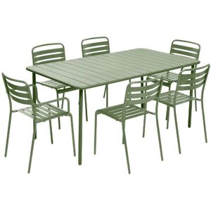 The advantages of the products Simple rainwater drainage Rust treatment Folding table Stackable chairs and armchairs A timeless design garden table This 6-seater metal table is perfect for your garden or balcony terrace. Its timeless design will blend and adapt to any style of outdoor décor. The Amelia table is ideal for enjoying convivial moments with your loved ones. Enjoy the fresh air of your outdoor space with this beautiful table! Robust and rust-resistant The Amelia steel garden table is perfect for those looking for a durable and attractive table. It features rust treatment, meaning it can be used outdoors without fear of damage from moisture or rain. The table also has charming slats and rounded edges. Finally, rainwater can easily escape through the slats of the table. For practicality, the seats are stackable and the table folds for space-saving when not in use. Timeless design chairs and armchairs The Amelia chairs and armchairs will truly enhance your garden décor, with