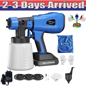 Description: 【STRONG POWER MOTOR 】The 900W motor allows spray a precise spray pattern and creating the smooth and superior finish. Spray, paint, oil, stain, enamel, lacquer, texture, and airbrush coating materials with less dilution. 【ADJUSTABLE FLOW CONTROL AND LARGER CAPACITY 】Precisely regulate your paint flow by adjusting the flow control knob on the sprayer to get different paint output, suitable for edges, corners and broad interior surfaces of various work and DIY projects. container for larger painting projects. Save your refilling time. 【BRONZE SPRAY TIP TECHNOLOGY】 By using bronze spray tip and nozzle, paint sprayer provides excellent performance over plastic one. Compared to plastic, the bronze nozzles and spray tips have better corrosion and wear resistances, enhancing a consistent and precision spray pattern Specifications: Colour:blue Material: ABS Type:Air Spray Gun Model:Li Battery spraying machine Power: 900 W Cup/Hopper Capacity:1000ML Power Source:Li Battery