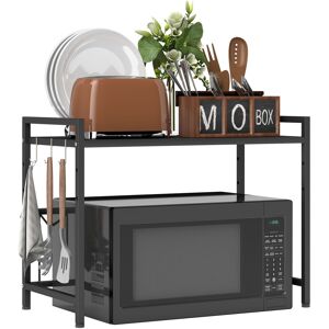 Feature: 40 cm bottom height accommodates most kitchen appliances Includes 3 hooks for utensils and oven gloves Length extends from 39.5 to 64 cm for versatile use Metal construction ensures durability and stability Adjustable foot pads provide level placement on uneven surfaces Simple and elegant appearance fits kitchen, office, or study Assembly required Specification: Colour: Black Materials: Metal Overall Dimension: 39.5-64W x 32D x 47.5H cm Feet Height: 40 cm Weight Capacity: 15 kg Item Label: 801-394V00BK 1 x Microwave Oven Rack 1 x Manual