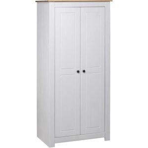 This classic wardrobe, featuring a French design, offers ample storage space to keep your clothes, shoes and accessories neatly organised. Solid pine wood: Solid pine wood is a beautiful natural material. Pine wood has a straight grain, and the knots give the material its signature, rustic look.Spacious storage: The closet contains a hanging rail for storing clothes, allowing you to hang your clothing items neatly and prevent them from getting wrinkled. The armoire also has a top shelf for additional storage, giving you more space to store items such as bags or folded clothes.Practical doors with metal handles: Keep your essentials free from dust by hiding them behind the doors of the storage cabinet. The metal handles on the doors make it easy to open and close the doors.Charming French style: Add an inspiring French style to your interior decor! Warning:To prevent it being overturned, this product must be used with the provided wall attachment device. Colour: White, brown Top