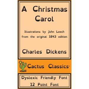 A CHRISTMAS CAROL (With illustrations from the original 1843 edition.)by Charles DickensEDITION: Cactus Classics Dyslexic Friendly Font - 12 Point FontFONT: 12 point OpenDyslexic 3BOOK TRIM SIZE: 6" x 9" (15.2 cm x 22.9 cm)COVER: GlossyPAPER: CreamTABLE OF CONTENTS: YesTABLE OF ILLUSTRATIONS: YesCactus Classics Dyslexic Friendly Font editions are typeset in the open source OpenDyslexic 3 font. This font was designed to increase readability for readers with dyslexia. Many people with dyslexia find that this font helps with reading but it does not help everyone.Cactus Classics Dyslexic Friendly Font editions have a glossy cover, cream paper interior, wide margins, generous white space, extra space between lines of text, left justified text with jagged right side, indented paragraphs and minimal use of all capital letters. Bold text is used instead of italics.ABOUT THE BOOK AND AUTHORA Christmas Carol is a novella written by Charles Dickens (1812–1870) and was first published in 1843. It is among his most popular works. The original title was A Christmas Carol, in Prose: Being a Ghost Story of Christmas. This edition contains illustrations from the original 1843 edition.A Christmas Carol tells the story of Ebenezer Scrooge of Christmas Past, Present and Yet to Come, as well as the ghost of his former business partner. After these visits, Mr. Scrooge transforms into a gentler, kinder man.A Christmas Carol is the first of five Christmas novellas by Charles Dickens. The five novellas are A Christmas Carol (1843), The Chimes (1844), The Cricket on the Hearth (1845), The Battle of Life (1846) and The Haunted Man and the Ghost's Bargain (1848). The most famous Christmas themed novella is A Christmas Carol.Charles Dickens was a prolific writer of novels, novellas, short stories and other works.OTHER CHRISTMAS THEMED BOOKS BY CHARLES DICKENSISBN: 9781773600536 - A Christmas Carol (Cactus Classics Dyslexic Friendly Font),ISBN: 9781773600543 - The Battle of Life (Cactus Classics Dyslexic Friendly Font),ISBN: 9781773600550 - The Chimes (Cactus Classics Dyslexic Friendly Font),ISBN: 9781773600567 - The Cricket on the Hearth (Cactus Classics Dyslexic Friendly Font),ISBN: 9781773600574 - The Haunted Man and the Ghost's Bargain (Cactus Classics Dyslexic Friendly Font),ISBN: 9781773600581 - Some Christmas Stories (Cactus Classics Dyslexic Friendly Font)