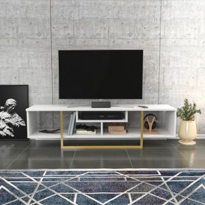 Upgrade your living room with our modern and innovative TV Stand. With its sleek design and high-quality materials, it is sure to add a touch of elegance to any space. Enhance Your Living Space Transform your living room into a stylish and sophisticated haven with our TV Stand. Its modern concept and novelty design will instantly elevate the ambiance of your space, making it the perfect centerpiece for your entertainment area. Ample Storage Our TV Stand features numerous shelves, providing ample storage space for all your media devices, DVDs, and other accessories. Keep your living room organized and clutter-free with this functional and stylish piece of furniture. Versatile and Practical Not only does our TV Stand offer plenty of storage options, but it can also be fixed to the wall for added stability and safety. This feature ensures that your TV and other valuable items are securely in place, giving you peace of mind. Premium Quality Crafted from 100% melamine coated particle board, our TV Stand is built to last. The 18mm thickness adds durability and strength, ensuring that it can withstand the test of time. Sleek Design The TV Stand comes in a combination of colors, adding a touch of sophistication to your living room decor. Its sleek and modern design will effortlessly blend with any interior style, making it a versatile and timeless addition to your home. Technical Details: • Material: 100% melamine coated particle board • Thickness: 18mm • TV Stand Size: Width: 149.4cm, Height: 40.2cm, Depth: 35.2cm • Middle Shelf Size: Width: 48cm, Height: 10cm • Leg Height: 10.4cm Made In Türkiye Zipcode Design Colour: White