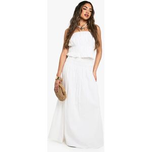 Crafted from breathable cotton poplin fabric for all-day comfort Flattering shirred design creates texture and shape Scoop neckline frames the dcolletage beautifully Adjustable spaghetti straps for a customised fit Cropped length perfect for high-waisted bottoms This Cotton Poplin Shirred Crop Top from Boohoo brings casual charm to your everyday wardrobe. The textured shirring detail adds dimension while creating a figure-flattering silhouette that moves with you. Style with high-waisted denim shorts and trainers for daytime outings, or pair with flowing palazzo trousers and sandals for family gatherings. The versatile scoop neckline works brilliantly layered with delicate necklaces, as shown on our model. For cooler evenings, throw on an oversized cardigan or light denim jacket to maintain that effortless vibe. The natural cotton fabric ensures breathability, making this top ideal for warm-weather socialising or relaxed weekend brunches with friends.