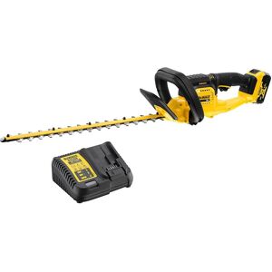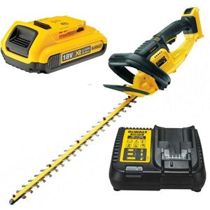 Part of the 18v XR range of landscaping power tools, the DCM563 is a cordless hedge trimmer which is built to the same robust build standards that DeWalt's industrial power tools are renowned for. Powered by the reliable 18v XR battery system, the DCM563 ensures unrestricted movement without the hassle of cords. Trim hedges, shrubs, and bushes effortlessly, thanks to its 550mm dual-action, laser-cut blades that deliver clean and consistent cuts with reduced vibration. The ergonomic design of the DCM563 guarantees optimal balance and control during operation. Its lightweight construction minimizes fatigue, allowing you to trim for extended periods without discomfort. The trimmer's wraparound auxiliary handle provides a secure grip, enhancing manoeuvrability even in tight spaces. Equipped with a safety-conscious two-trigger start system, this cordless hedge trimmer prevents accidental activation, ensuring a secure operating environment. Features & Benefits • Compatible with the battery systems of DeWalt 18v XR power tools • Professional performance with cordless convenience • Hardened steel dual-action, laser-cut blades • 19mm cutting gap • Wrap around auxiliary handle for a comfortable grip in multiple positions • Up to 75 mins of trimming per charge with a 5ah battery • Xenoy housing for excellent durability and impact resistance Specifications • Battery Voltage: 18v • Battery Chemistry: Lithium ion • Blade Length: 550mm • Blade Gap: 19mm • Soft grip: Yes • Weight: 3.4kg Contents • DCM563P1 Cordless 18v Hedge Trimmer • 1x 18v Lithium ion Battery 5ah • Battery Charger