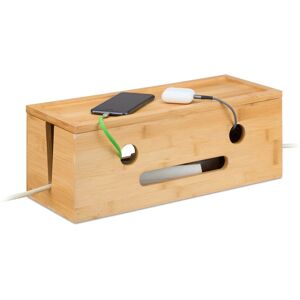 With the practical cable box, you can put an end to untidy cable clutter in the TV area or on the desk. The cable box offers space for 2 socket strips and makes the cables from your TV, games console, laptop or smartphone disappear. Thanks to the side openings, you can also place small devices directly on the lid of the cable collector while charging. The socket box impresses with its elegant design and natural bamboo lid. Cable Box in Detail - Dimensions H x W x D: approx. 13 x 31 x 14 cm - Internal dimensions H x W x D: approx. 12 x 30.5 x 13.5 cm - Cable outlets H x W: approx. 2 x 16.5 cm - Weight: approx. 0.5 kg - Material: Plastic, bamboo - Colour: White, natural Socket Box for Cable Management - Practical cable concealer with space for 2 socket strips - Perfect for TV area in the living room or desk - Charge multiple devices in parallel thanks to 2 cable outlets - Cable organiser protects sockets from dust - Cable organiser offers more safety for children and pets - Modern