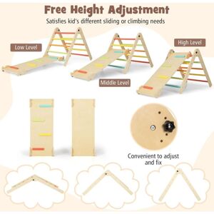 This indoor climbing toy set is an ideal choice to help your kids burn their energy and exercise their muscles. It has a sliding ramp, climbing ramp, climbing ladder, crawling tunnel, step stool, and kids table and chair set. Your little one can fully enjoy the fun of sliding, climbing, or crawling. The triangle climbing ladder is angle-resistant for different climbing uses. Plus, you can also adjust the height of the 2-in-1 ramp to meet the growing stages of your child. Different from other climber sets, our 7-in-1 climbing gym comes with a toddler step stool to allow kids to help parents with cooking or doing small activities up higher. The step stool is also equipped with a drawing chalkboard. It can also be converted into a kids table and chair set. More importantly, the whole play set has passed EN71 certifications to ensure overall security. The triangular structure and balance support feet keep it stable and steady. After use, you can fold the triangle climbing ladder into a
