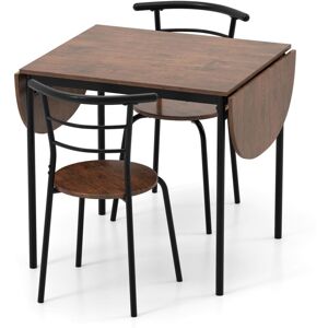 Maximize your dining space with our 3pcs small dining set! Ideal for cozy kitchen nooks or smaller dining areas, the set features an expandable oval table, perfect for any gathering, big or small. The 2 chairs tuck seamlessly under the table, optimizing your space with style. Elevate your interior design with the chic, industrial charm of this set, featuring sleek lines and a stylish matte black metal frame. And with their sturdy construction, the table can comfortably support up to 80 kg, while each chair holds up to 150 kg. Infuse charm and functionality into your home with this delightful dining ensemble! Bullet Point: Space-efficient Dining Set: Comprising an 140 cm oval table and 2 dining height chairs, our dining room set is an ideal fit for small spaces. Plus, the armless chairs tuck neatly under the table when not in use, minimizing the space it takes. Expandable Tabletop: The flexible drop leaf design of the dining table easily adapts to any occasion. Its expanded form offers