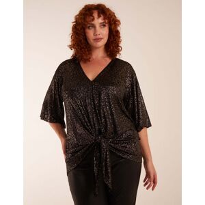 An oversized sparkly option ready for the party season ahead! Team this oversized top, with PU leggings and be ready to shimmer in style! 94% Polyester, 6% Elastane Made in China Machine washable V necklineShort SleeveUnfastenedModel wears a size 18/20Model height: 5ft 9 / 175cm