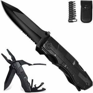 ★ Multi-function Pocket Knife: Includes knife/saw blade, pliers, bottle opener, can opener, screwdriver. It is an economical, durable, sophisticated, and compact multi-tool. Whether camping, hiking, or working, the multi-tool is the perfect companion for all activities and situations. ★ HIGH PERFORMANCE: This multi-tool is made of durable, high-quality stainless steel, and an ergonomic aluminum handle promises durability and sturdiness. The handle is a die-cast part, it is the 2-handed version, both left- and right-handed users can make the knife comfortable to use. ★ Easy to carry: This is an economical, durable, and compact multi-tool. When folded, the pocket knife measures only 110 mm and weighs 330 g. The nylon sheath can be attached to your belt, and the foldable design allows for complete storage! ★ Built-in safety features: The multi-tool is not only easy to use, but also extremely stable and stable. The multi-tool blade has a safety lock inside to prevent accidental folding;