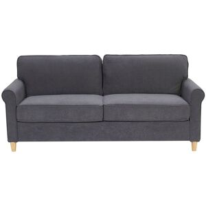 3 Seater Sleeper Sofa. This astonishing sofa will definitely become the instant centrepiece of the room with its classic design influenced by retro forms. Its upholstery, fashioned from high-quality velvet fabric, is soft to the touch and pleasing to the eye. The seat and backrest feature the traditional biscuit padding which brings out the beautiful shimmer of the material. The generous foam filling, two thick armrest cushions and stable rubberwood legs guarantee the highest seating comfort. The sofa can be easily turned into a comfortable bed so you can accommodate your guests. Details: Product Type: Sofa Bed Style: Retro General Color: Black, Brown Material Type: Fabric Main Material: Velvet Additional Material: Rubberwood Filling Material: Foam Material Composition: 100% Polyester Arm Style: Track Leg Caps/ Pads: Yes Reclining: No Removable Cushion Covers: Yes Seat Construction: Sinuous Springs Seat Foam Density: 50 kg/m3 Seats Up To: 3 People Sleeper Function: Yes Sofa Bed Open