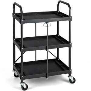 Utility 3-tier folding trolley for your diverse storage needs! The rolling service cart features 3 spacious shelves, not only can be used to store tools, but also can be used as a meal cart, grocery cart, bringing great convenience to your work and life. Each shelf is designed with 4 small grooves, so you don't have to worry about missing small tools. And this folding cart is equipped with convenient handrails and 4 universal wheels(2 of them are lockable), allowing flexible and quiet movement to anywhere. Made of heavy-duty metal, it is strong and durable enough, and not easy to deform and crack. What's more, the reinforced triangular structure on the back further improves the stability of the structure. For your convenience, the cart is assembly-free. Besides, it is easy to fold, you just need to pull up the top pull ring to easily fold it up to store or carry. WFX Utility